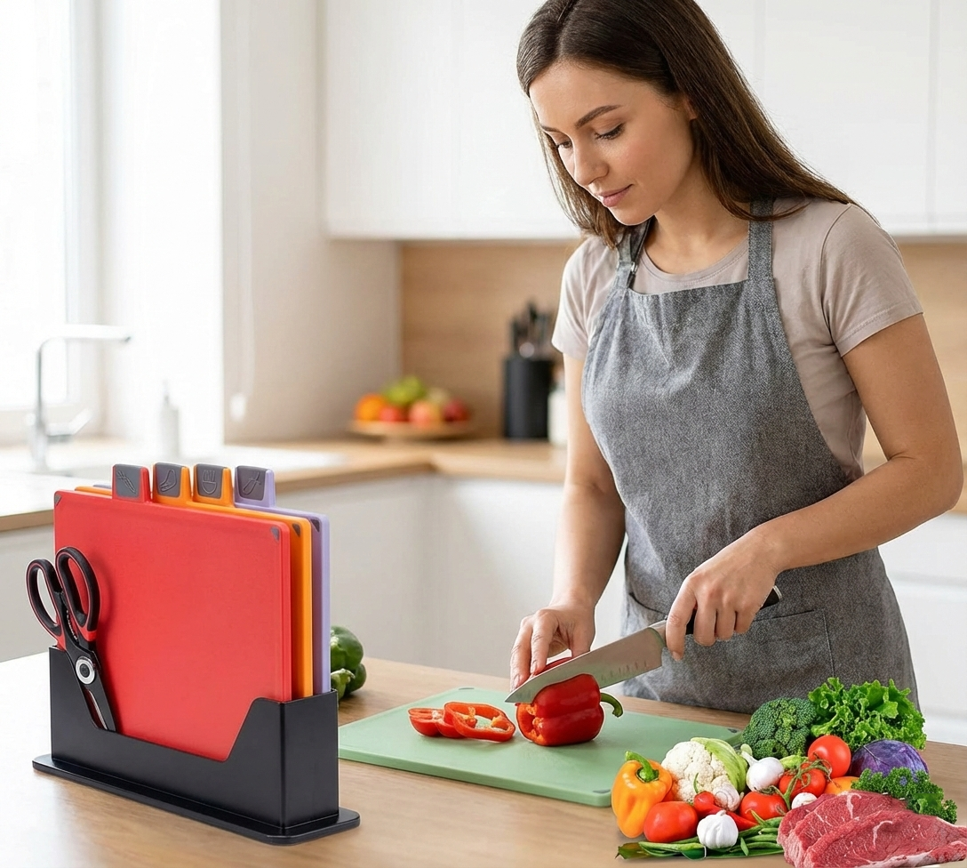 Make meal prep safer and easier with the GripSafe Plastic Cutting Board Set. Designed with non-slip edges, these boards stay firmly in place while chopping, offering better control and confidence during food preparation.